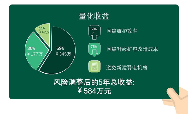 弱電機房投資:免取電的無源分光器取代傳統有源匯聚交換機,大幅節省機房投資,五年總收益現值超62萬元人民幣。